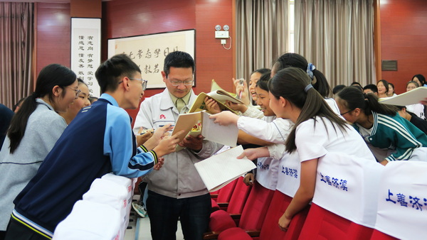 “能给我签个名吗?我以后也想成为您这样的人!” 9月12日,济源示范区总工会“劳模工匠进校园”活动走进济渎路学校,宣讲“开学第一课”结束后,学生们围着劳模工匠追要签名,场面热烈,让人心灵触动,精神振奋。